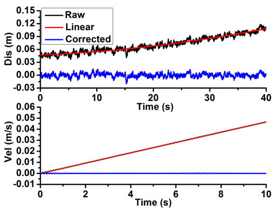 Given the presence of high-frequency noise, we usually integrate the velocity to obtain low-frequency displacement and use least-squares fitting to estimate the initial shift. Equations (3) and (4) are the solution and correction, respectively, for the displacement: