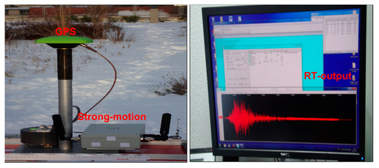 - The real-time data processing module include pre-processing, integration, and quality control. During the pre-process period, after the SM determines the signal start, each subsystem carries out an initial shift correction. Then, the GNSS system provides accurate displacement information and the SM system provides accurate acceleration information. In the integration process period, the GNSS displacement and SM acceleration are the system inputs to the Kalman filter process; the accurate and low-frequency displacement can effectively constrain the SM’s baseline shift and retrieve high-precision velocity information. In the quality control module, the integrated system’s velocity and displacement are inspected; the accuracy and reliability are also verified.