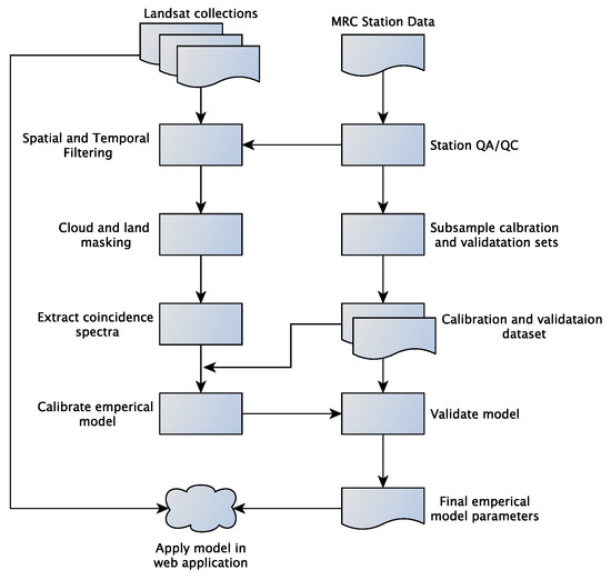 General workflow schematic for building SSSC empirical model from satellite imagery.