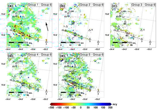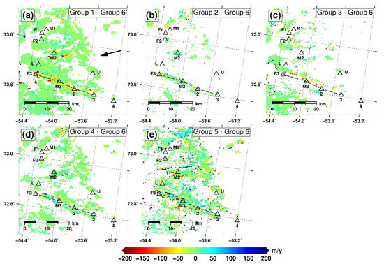 | Interferogram filtering c | NL: 4 × 20, Goldstein (Nfft: 64, α: 0.8) | NL: 4 × 20, Mean filter (12 pixel radius) | NL: 4 × 20, Mean filter (18 pixel radius) | NL: 4 × 20, Goldstein (Nfft: 64, α: 0.5), Ionospheric filter |