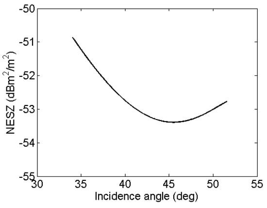 SETHI instrument noise floor (NESZ) plotted by increasing incidence angle—reproduced from [].