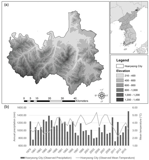 - On 30 August 2016, an area of 106.63 km2 (7.81%) in Hoeryeong City was inundated. Most floods occurred in flat areas adjacent to lower- and middle-order streams.