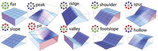 - Jasiewicz, J.; Stepinski, T.F. Geomorphons—A pattern recognition approach to classification and mapping of landforms. Geomorphology 2013, 182, 147–156. [Google Scholar] [CrossRef]