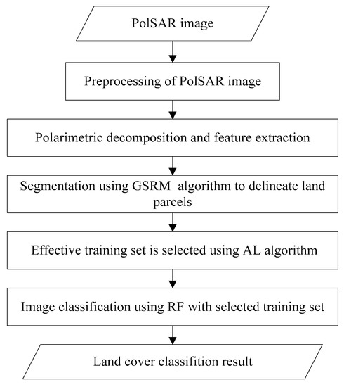 In this paper, a novel object-based supervised classification method which integrates the advantages of three different algorithms (the GSRM algorithm, the AL method, and the RF classifier) is proposed for the classification of PolSAR imagery. The procedure of the proposed method is introduced in this section.
