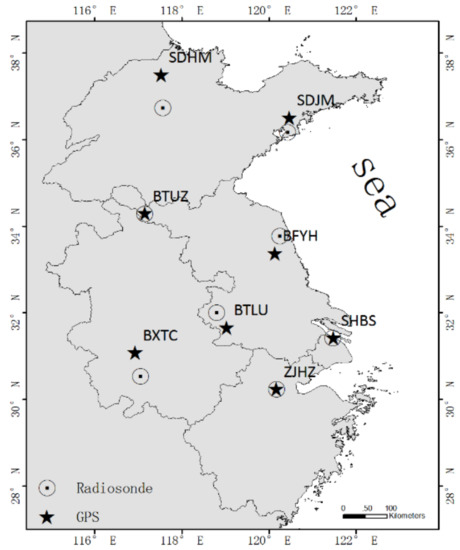 - Liou, Y.A.; Teng, Y.T.; Van Hove, T.; Liljegren, J.C. Comparison of precipitable water observations in the near tropics by GPS, microwave radiometer, and radiosondes. J. Appl. Meteorol. 2001, 40, 5–15. [Google Scholar] [CrossRef]