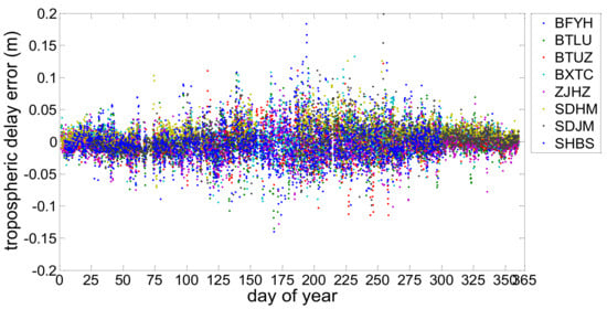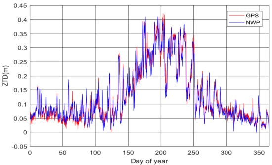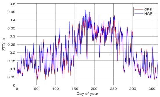 3.1. Tropospheric Delay Comparison between NWP and GAMIT