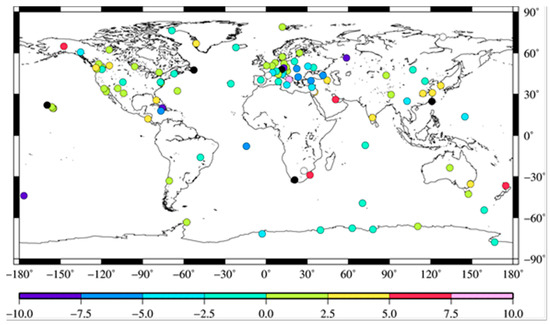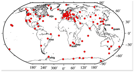 Supplementary, Figure S1). The spatial distribution of the selected IGS stations is shown in