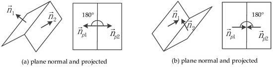 To accomplish these enhancements, we projected the normal vectors of adjacent primitives onto the ground plane, as illustrated in Figure 9, where the and are the normal vectors.