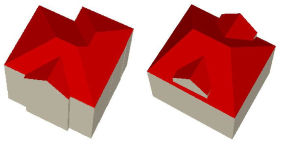 A detailed visual inspection for the reconstructed model, especially for the colored roof structures, is illustrated in Figure 14. A building model can be combined to produce a variety of meaningful structures, marked with different colors.
