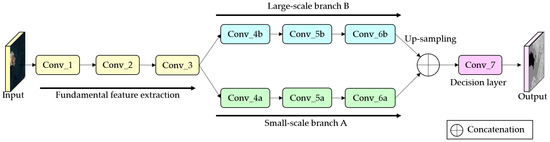 It is worth mentioning that formulas in Equation (8) are approximate calculations for two branches, so images in Figure 10b,c are only sketches. Nonetheless, benefitting from the dual-scale structure, it can be found that the proposed network did successfully learn two different information scales, and the behaviors of the branches in our network are similar to the original ones. Besides, the fusion process of these dual branches can be found in Figure 10.