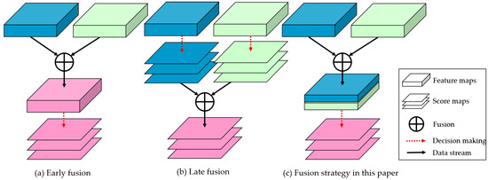 For the fusion operation of different features in a convolutional neural network, some classical fusion strategies are early fusion and late fusion, as shown in Figure 5.