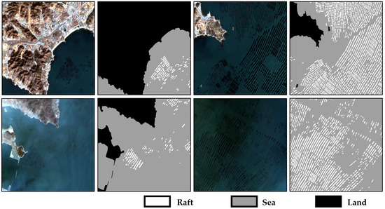 The ground truth labels of our dataset contain three categories representing land, sea and raft, respectively.