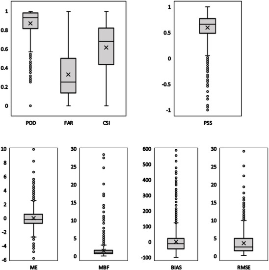 | Critical Success Index (CSI) | 0–1 | 1 | |