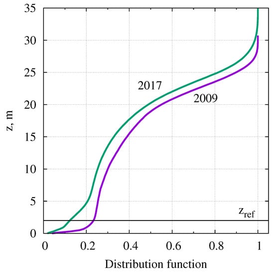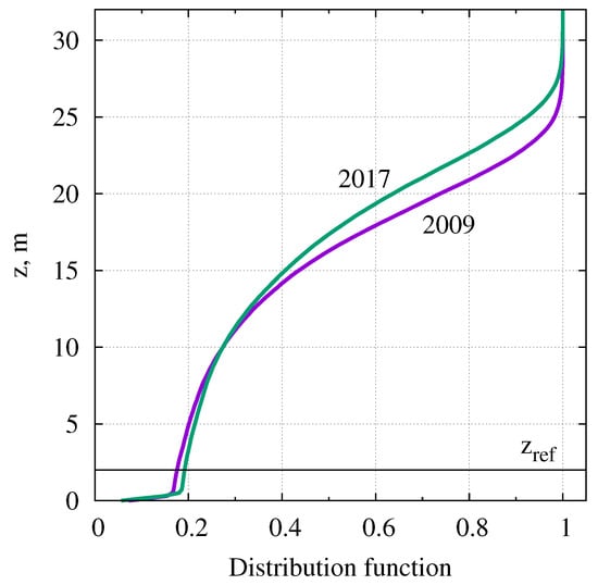 Distribution function of ALS hits in the RAMI pine stand in 2009 and 2017.
