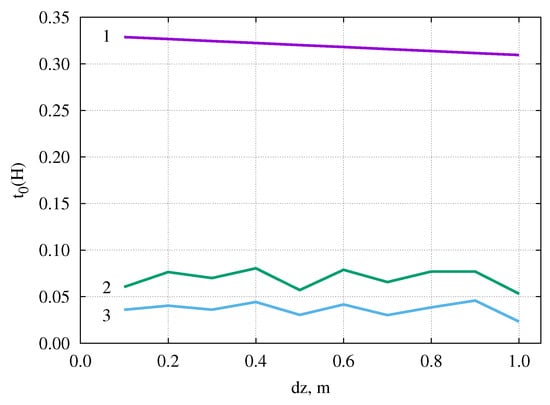 Dependence of the gap fraction estimate on the thickness of differential layers ; 1—the pine stand, 2—the spruce stand, 3—the birch stand.