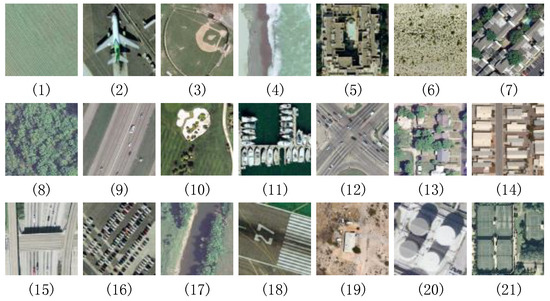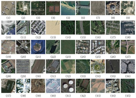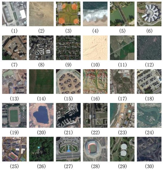 51] is acquired from Google Earth using different remote imaging sensors. This dataset contains 10,000 images associated with 30 classes, as shown in