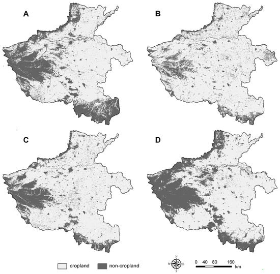 - Pérez-Hoyos, A.; Rembold, F.; Kerdiles, H.; Gallego, J. Comparison of global land cover datasets for cropland monitoring. Remote Sens. 2017, 9, 1118. [Google Scholar] [CrossRef]