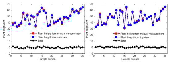 3.2. Accuracy of Plant Height Measurements in the Side and Top Views