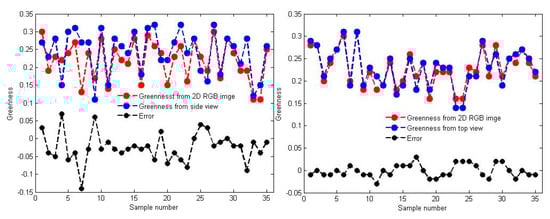 3.3. Accuracy of Greenness in the Side and Top Views