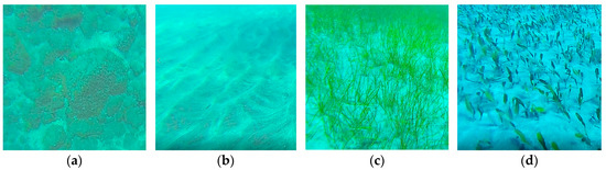Seafloor classes: (a) Rocks; (b) Sand; (c) Cymodocea nodosa; (d) Caulerpa prolifera.