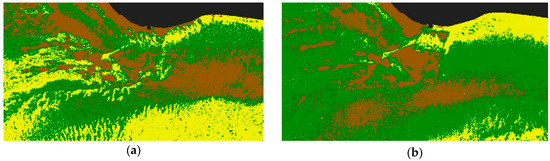 Finally, to assess the accuracy of the benthic maps derived from HS and MS imagery, apart from the accurate information from the in-situ transect and sampling sites, a reference map providing global information for the whole area was desirable. Unfortunately, very limited cartography is available and the map considered (Figure 2d) is the reference map available of the Maspalomas coast, which is part of a Spanish coastline eco-cartographical study from a series of maritime engineering and marine ecology studies structured in a GIS [42].