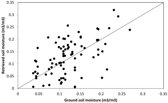 Comparison between the retrieved soil moisture from and ground soil moisture measurements.