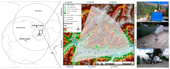 The authors would like to thank Urs Germann and Ioannis Sideris from MeteoSwiss for providing the Swiss Radar Network rainfall observations, and Andreas Schaffhauser (Austro Control Österreichische Gesellschaft, Austria) for providing the Valluga radar rainfall observations. Matteo Vischi and Pierpaolo Macconi (Ripartizione Opere Idrauliche, Provincia Autonoma di Bolzano—Italy) are thanked for the support in the installation of the XPOL radar. The study site is part of the LTSER Platform Matsch | Mazia, a member of the national and international Long-Term Ecological Research Networks (LTER-Italy, LTER-Europe and ILTER). Michael Engel and Francesco Comiti of the University of Bolzano are thanked for providing discharge and rainfall observations. G. Niedrist of EURAC is thanked for his work in maintaining the meteorological stations. Nikolopoulos acknowledges support from EU FP7 Marie Curie Actions IEF (project PIEF-GA-2011-302720).