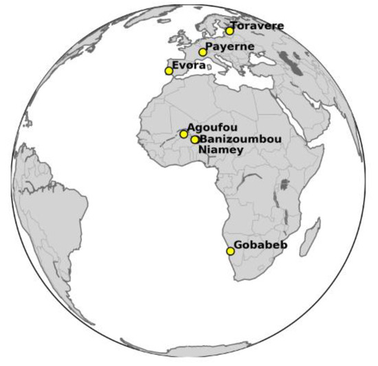 - Gobabeb (Namibia), Evora (Portugal)—LSA SAF (http://lsa-saf.eumetsat.int/)
