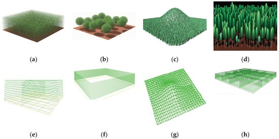 - Qin, W.; Gerstl, S.A.W. 3-D scene modeling of semidesert vegetation cover and its radiation regime. Remote Sens. Environ. 2000, 74, 145–162. [Google Scholar] [CrossRef]