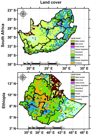 Land cover of South Africa (top) and Ethiopia (bottom).