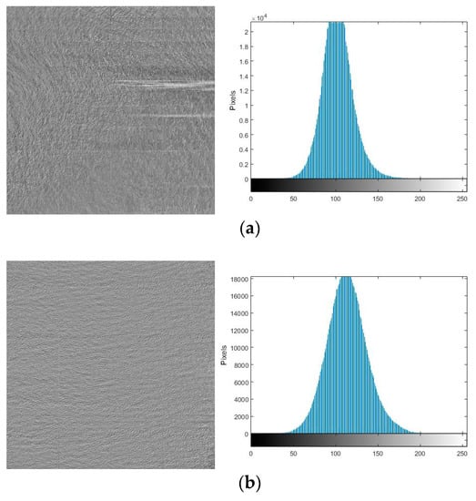 Comparison between texture of the original ship wake image and the enhanced ship wake image (a) Original ship wake image; (b) Enhanced ship wake image.