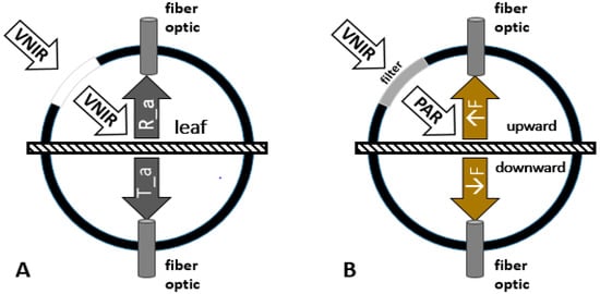 2.2.1. Acquisition of the Upward (↑F) and Downward (↓F) SIF Spectra at the Leaf Scale