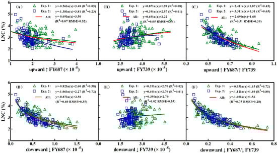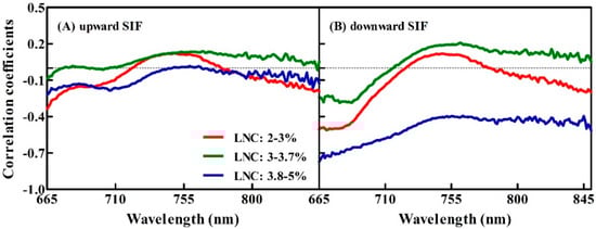 3.2. Correlations between the Upward and Downward SIF Yield and Three Given LNC Ranges for the Winter Wheat