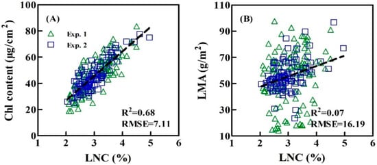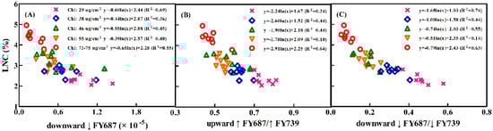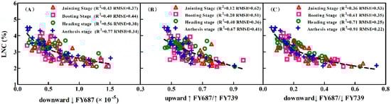 3.5. Assessing the LNC Models on SIF Yield Indices under Individual Stage, Different LNC, Chl Content, and Leaf Structure LMA