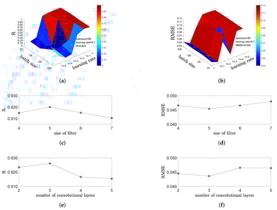Similarly, the optimal number of convolutional layers can be obtained from Figure 4e,f. Afterwards, we continue to train the DCNN model on the training data with the above hyperparameters, and then we will obtain the trained model of DCNN.