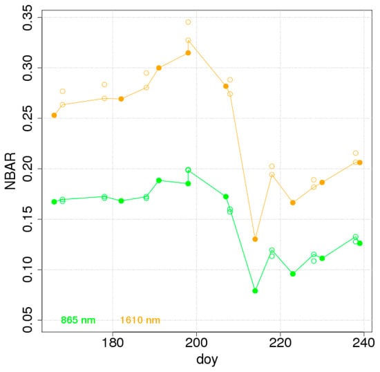 - Zhang, H.K.; Roy, D.P.; Yan, L.; Li, Z.; Huang, H.; Vermote, E.; Skakun, S.; Roger, J.-C. Characterization of Sentinel-2A and Landsat-8 top of atmosphere, surface, and nadir BRDF adjusted reflectance and NDVI differences. Remote Sens. Environ. 2018, 215, 482–494. [Google Scholar] [CrossRef]