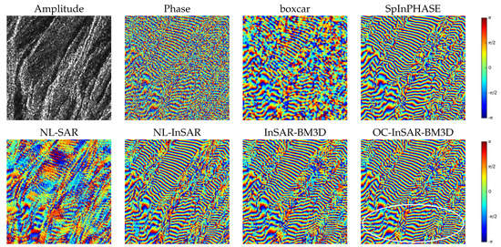 - Sica, F.; Cozzolino, D.; Zhu, X.X.; Verdoliva, L.; Poggi, G. InSAR-BM3D: A Nonlocal Filter for SAR Interferometric Phase Restoration. IEEE Trans. Geosci. Remote Sens. 2018, 56, 3456–3467. [Google Scholar] [CrossRef]
