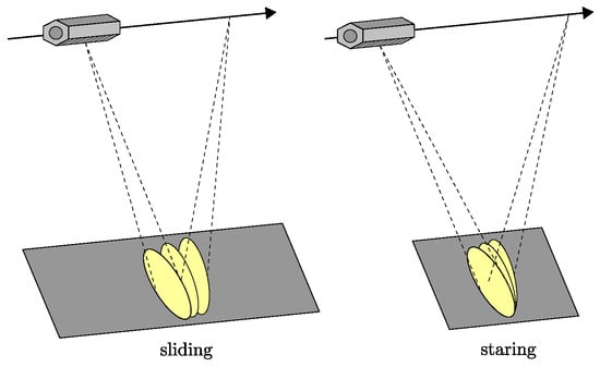 Figure 4. TerraSAR-X sliding (left) and staring (right) spotlight imaging geometry [48].