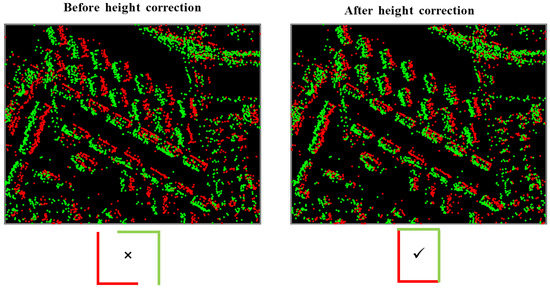 The first attempt to fuse cross-heading TerraSAR-X point clouds in an urban area was presented in [36]. This algorithm employs RANSAC to robustly match the ground points of two cross-heading TerraSAR-X PSI point clouds. The point correspondences are found by searching closely spaced point pairs on the ground surface. Therefore, this algorithm does not address the exact point correspondence. To find the exact point correspondence, Wang and Zhu detected the end positions of L-shaped facades in the two TomoSAR point clouds where the two point clouds converge [43]. In [6,53], the authors located dozens of pairs of street lampposts in two point clouds as point correspondences, additionally taking into account the diameter of the lampposts.