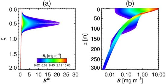 Compared to the values reported by Brewin et al. [], where the peak of phytoplankton biomass resides at between ζ = 0.8–1.2, Figure 5 indicates that the shelf sea data used here produce a peak biomass at shallower depths within the photic zone, though this may be due to the Case 1 light field used.