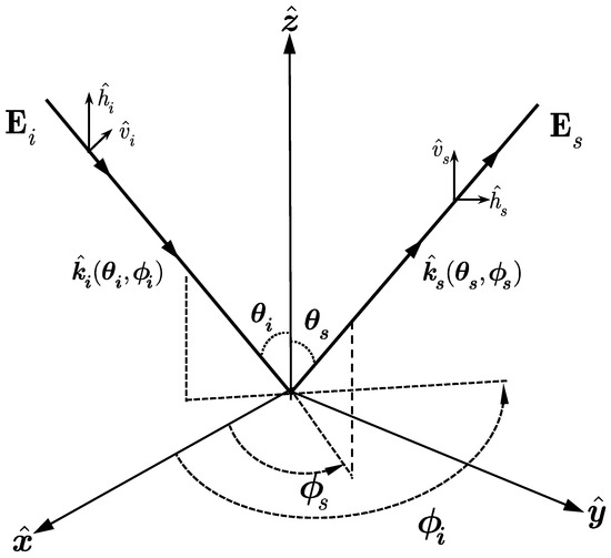 When an electromagnetic radar wave is incident upon targets, the scattering and propagation take place at the boundary between the two media [30,31,32]. Referring to the scattering geometry in Figure 1, the total electric field is