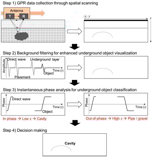 - Benedetto, A.; Tosti, F.; Ciampoli, L.; Amico, F.D. An overview of ground-penetrating radar signal processing techniques for road inspections. Sig. Proc. 2017, 132, 201–209. [Google Scholar] [CrossRef]