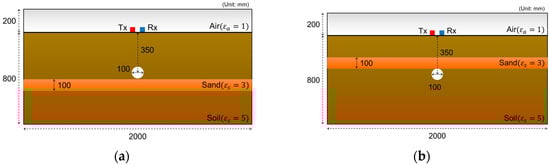 - Warren, C.; Giannopoulos, A.; Giannakis, I. gprMax: Open source software to simulate electromagnetic wave propagation for ground penetrating radar. Comp. Phys. Commun. 2016, 209, 163–170. [Google Scholar] [CrossRef]