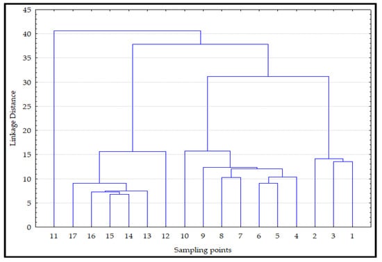 Cluster analysis of the sampling points of the Eastern Coastal Zone of the Gulf of California.