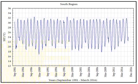 Time series of the SST of the South Region of Eastern Coastal Zone of the Gulf of California.