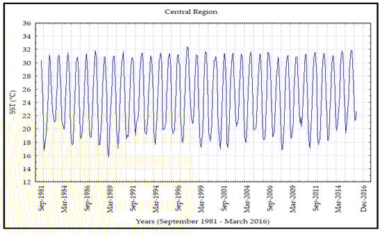Time series of the SST of the Central Region of the Eastern Coastal Zone of the Gulf of California.