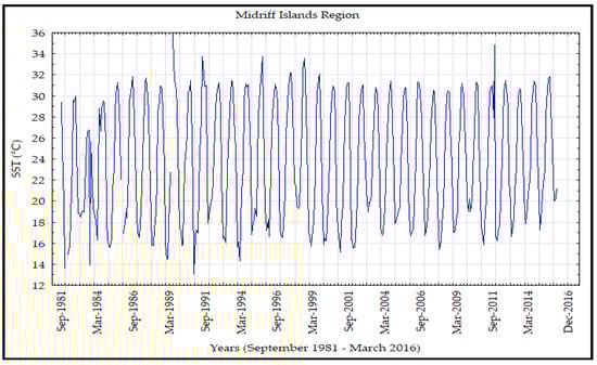 Time series of the SST of the Midriff Islands Region of Eastern Coastal Zone of the Gulf of California.