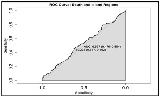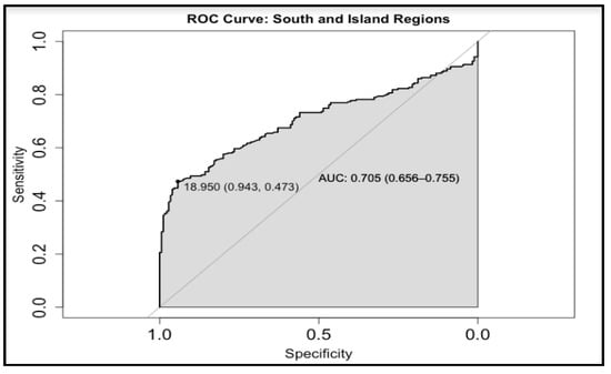 ROC curve analysis of the South and Midriff Islands Regions of the Eastern Coastal Zone of the Gulf of California (cold period).
