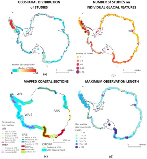 3.5. Geospatial Agglomeration and Coverage of Calving Front Studies