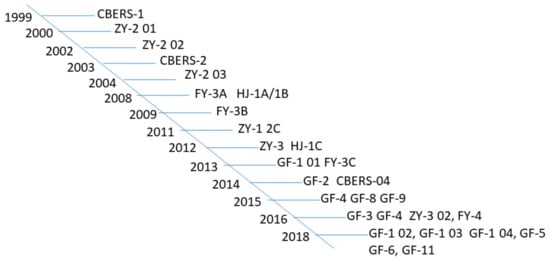 One of the major drivers of the rapid development of quantitative remote sensing in China is the availability of a huge amount of satellite data not only from the international space agencies but also from Chinese satellite sensors. Figure 2 shows the major Chinese satellite missions for land surface monitoring, such as the China-Brazil Earth resource satellites (CBERS), environment (Huang-Jing, HJ), resources (Zhi-Yuan, ZY), meteorological (Feng-Yun, FY), and high-resolution (Gao-Fen, GF) satellite series. Most of them are polar-orbiting satellites, but GF-5 and FY-4 are geostationary satellites. With the constellation of multiple satellites, both high spatial and temporal resolutions are being achieved.
